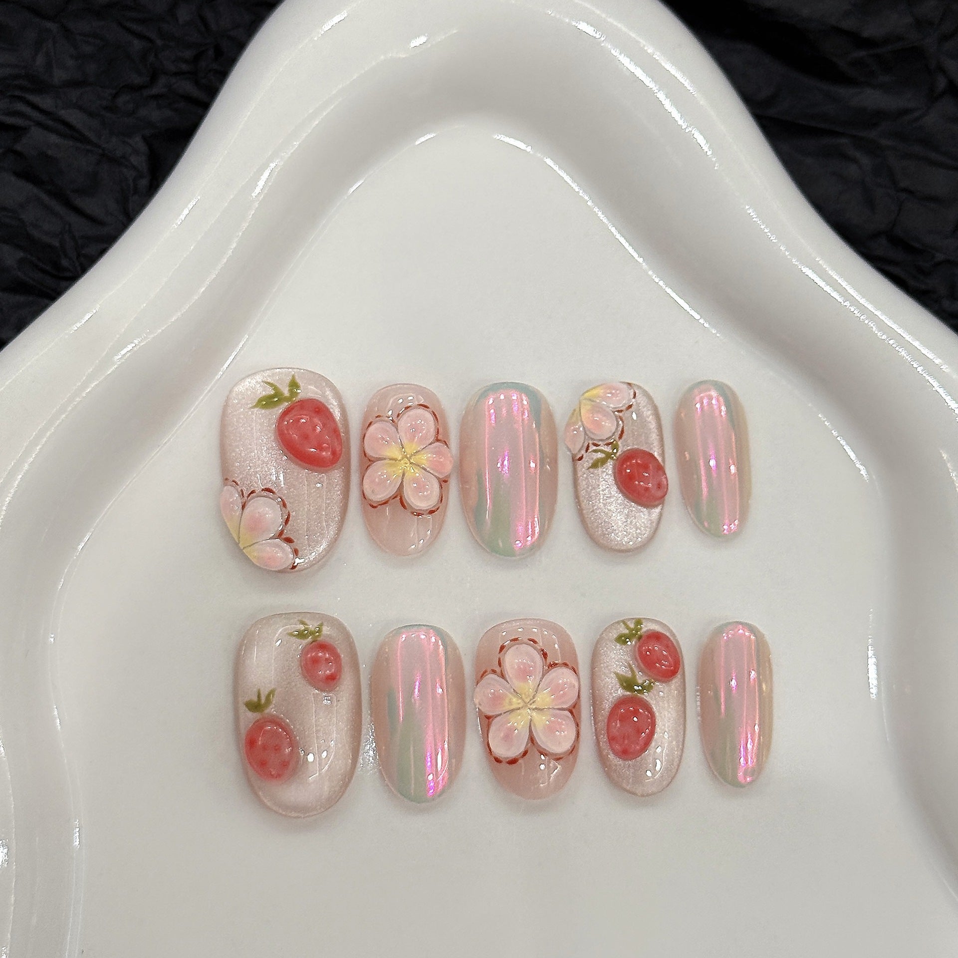 イチゴのポッポッ立体の手でイチゴの色絵春夏純粋な手で優しく優雅な楕円を着用し