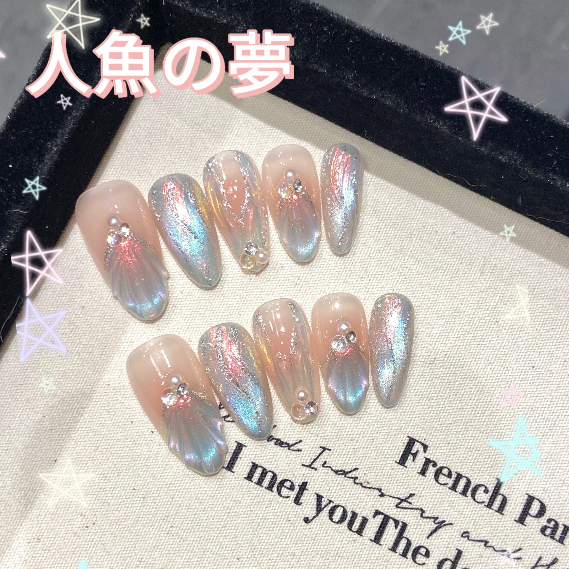 【人魚微夢】蔷薇真珠飾夢幻可愛純欲神秘高級感着用甲