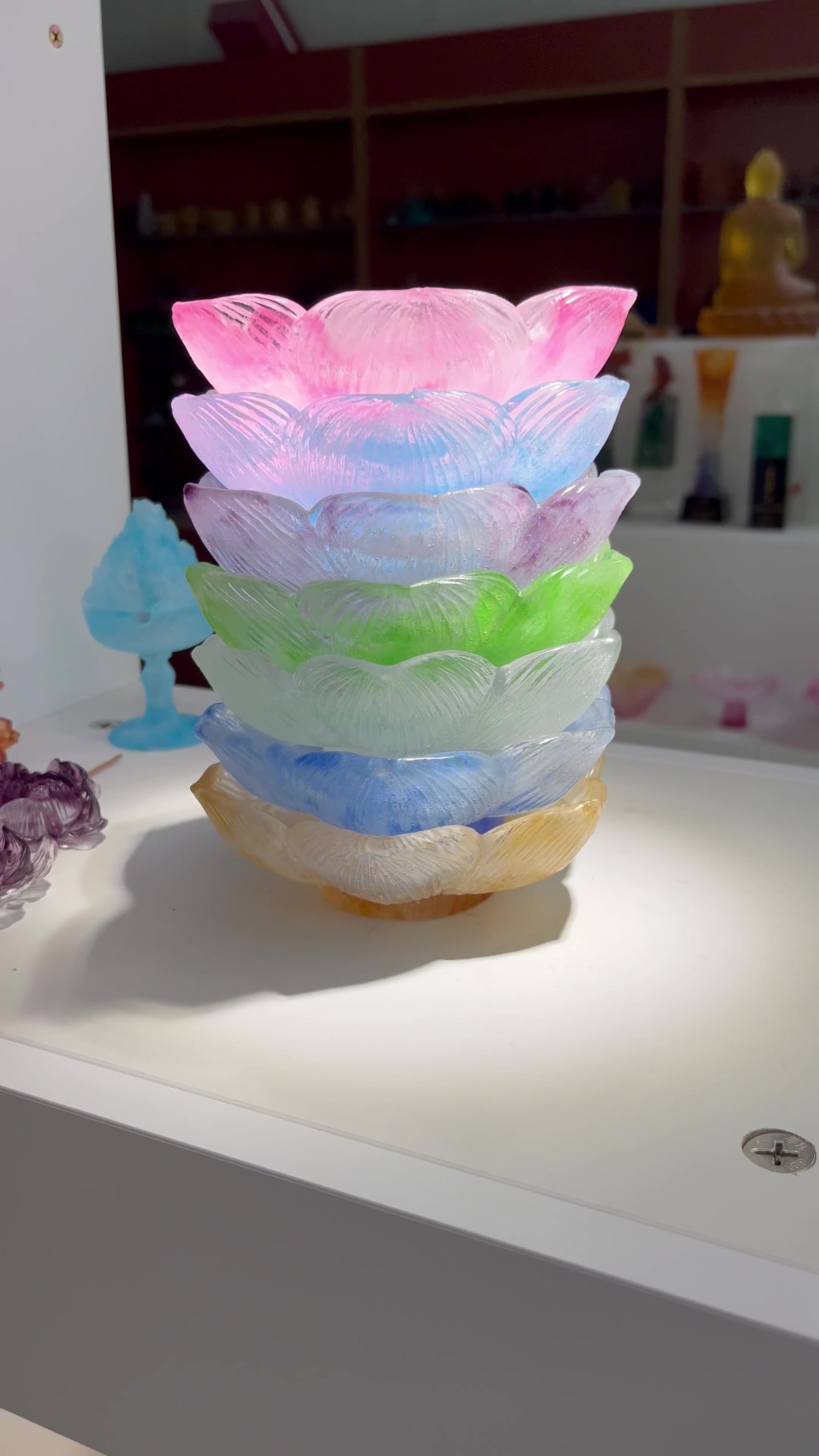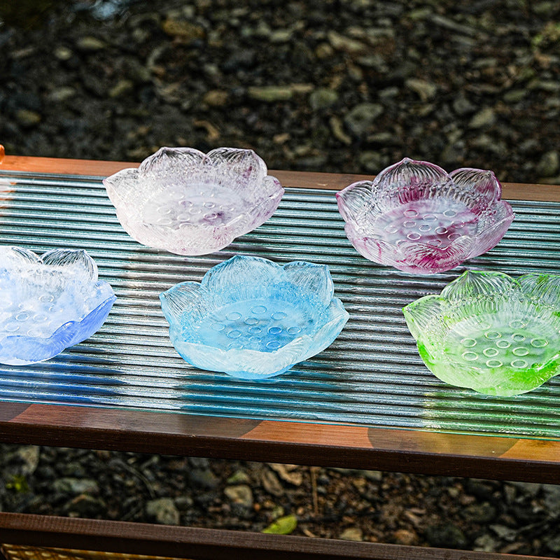 古法琉璃 粉焼き蓮花 蓮実ろうそく台