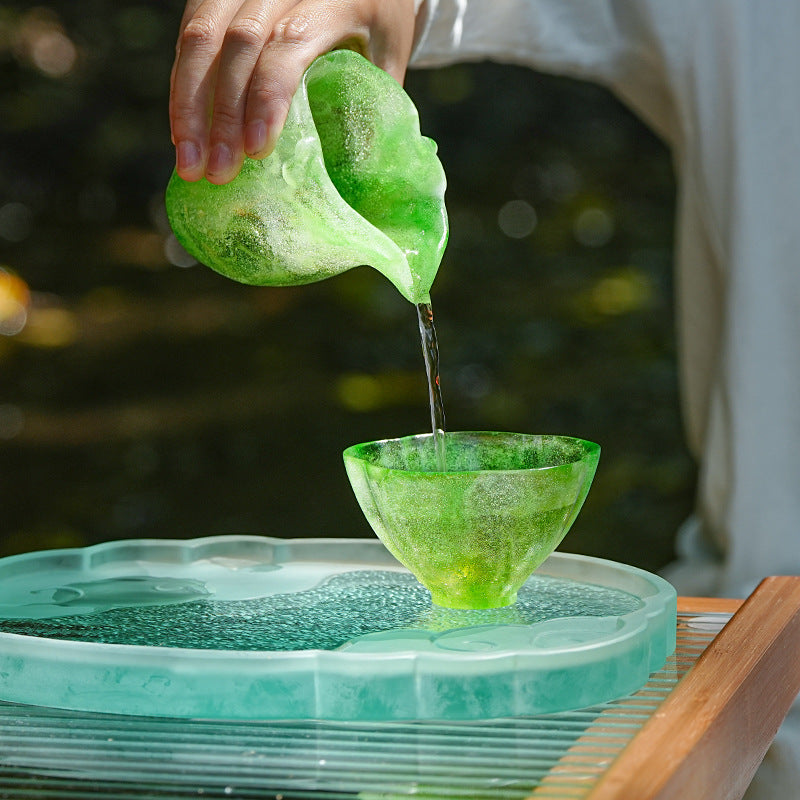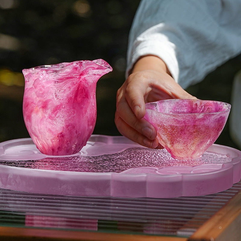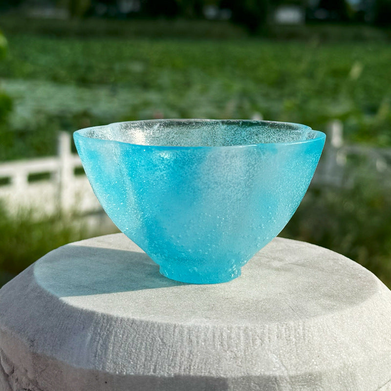 古法瑠璃 粉焼き瑠璃 芙蓉花口酒杯