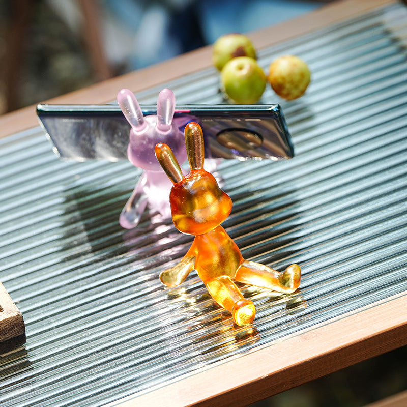 古法瑠璃の可愛いウサギのスマホ置物型スタンド