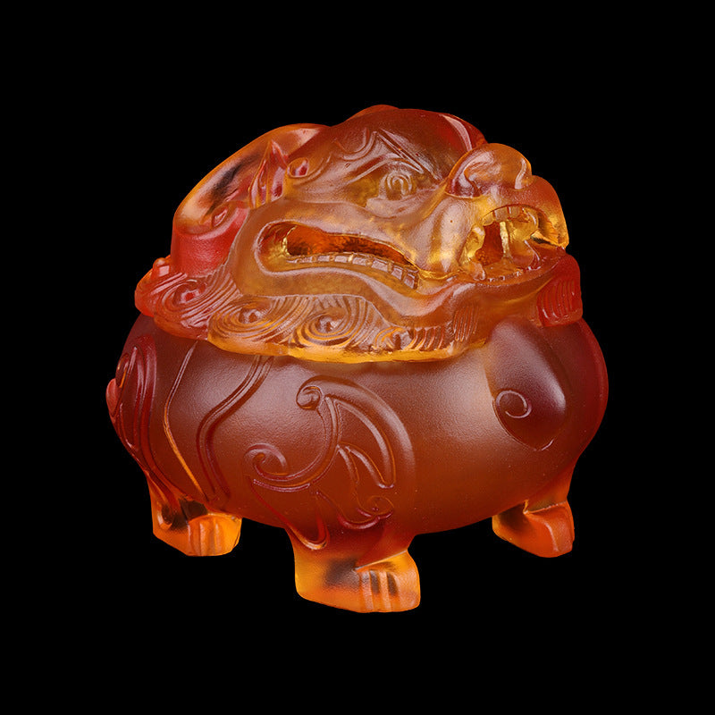 古法脱蜡琉璃の狻猊神獣置物