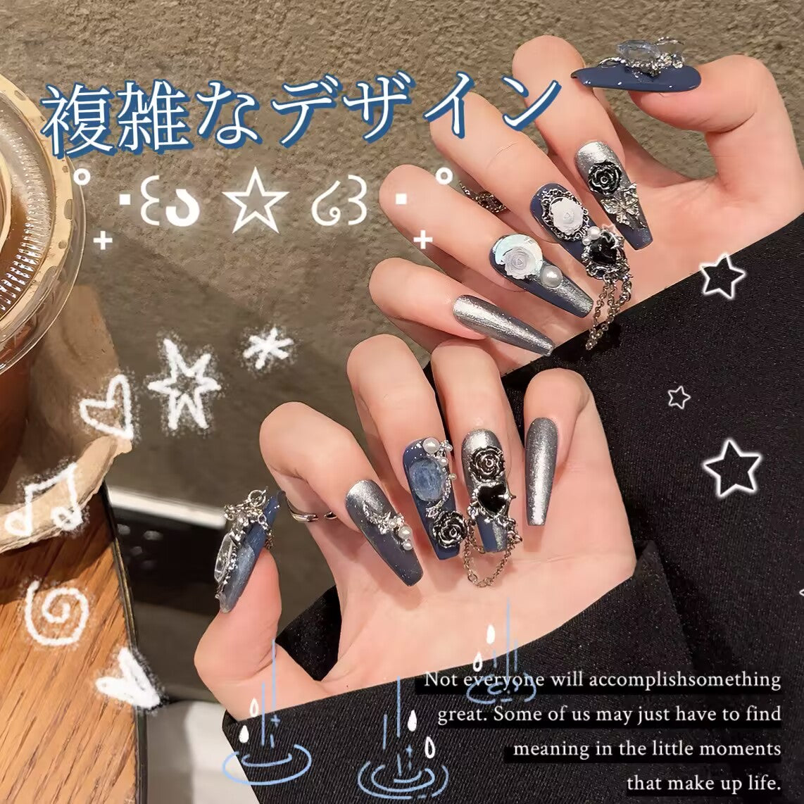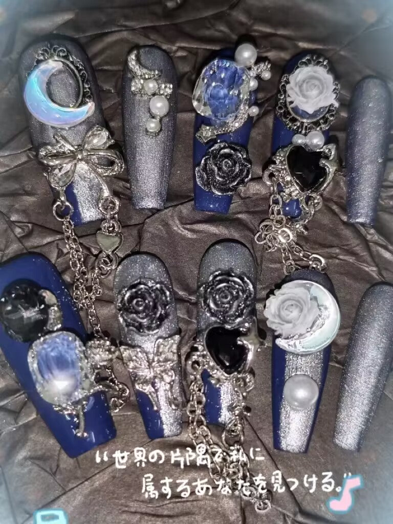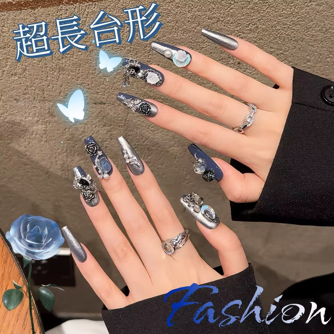 藍月蔷薇軽奢重工ダイヤモンドデザイン銀猫眼小衆神秘的高級着用甲