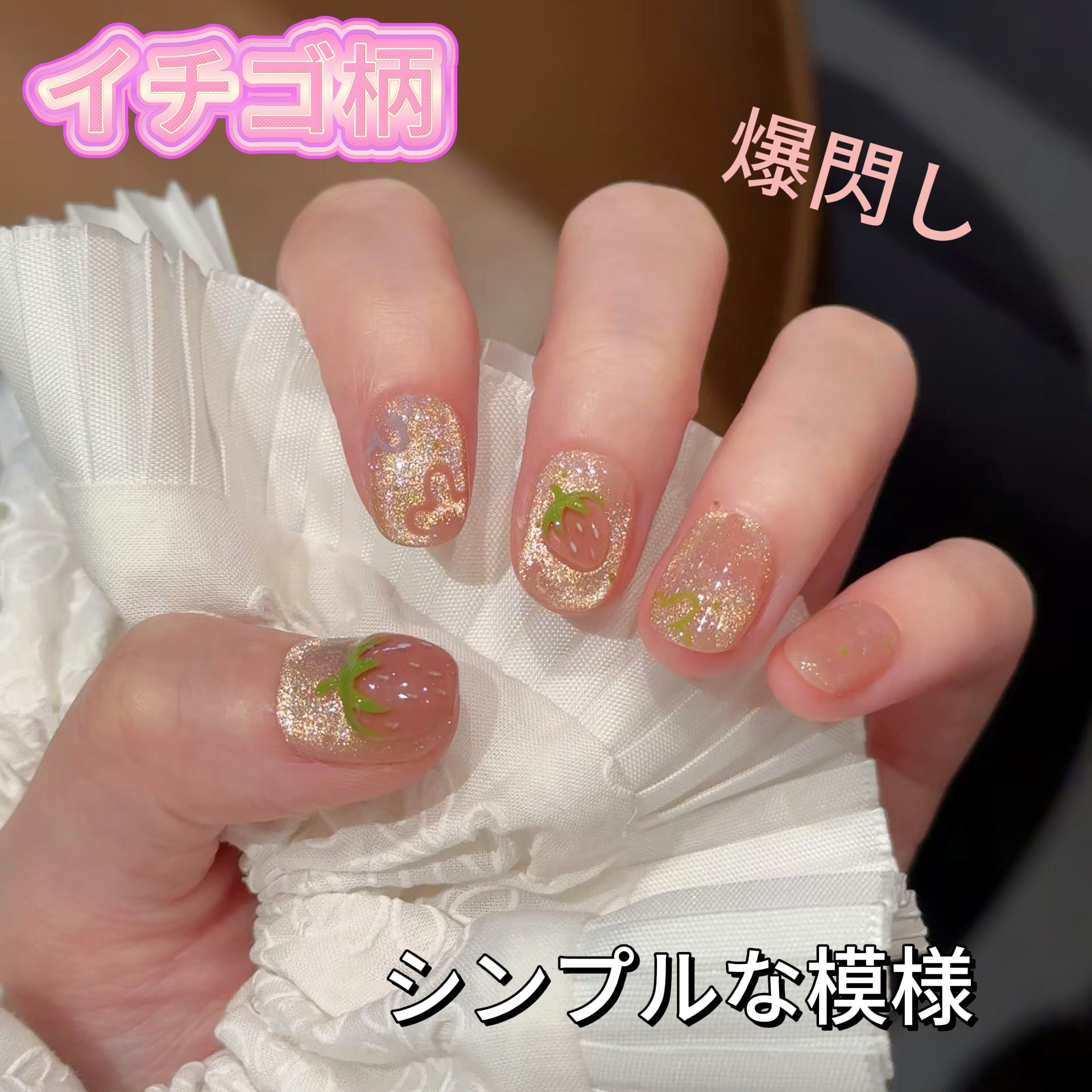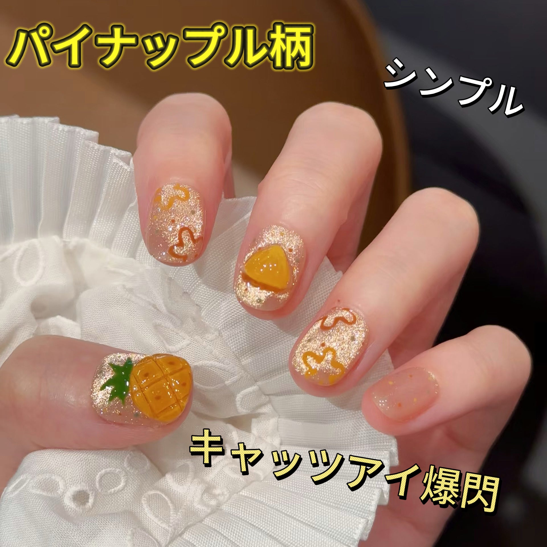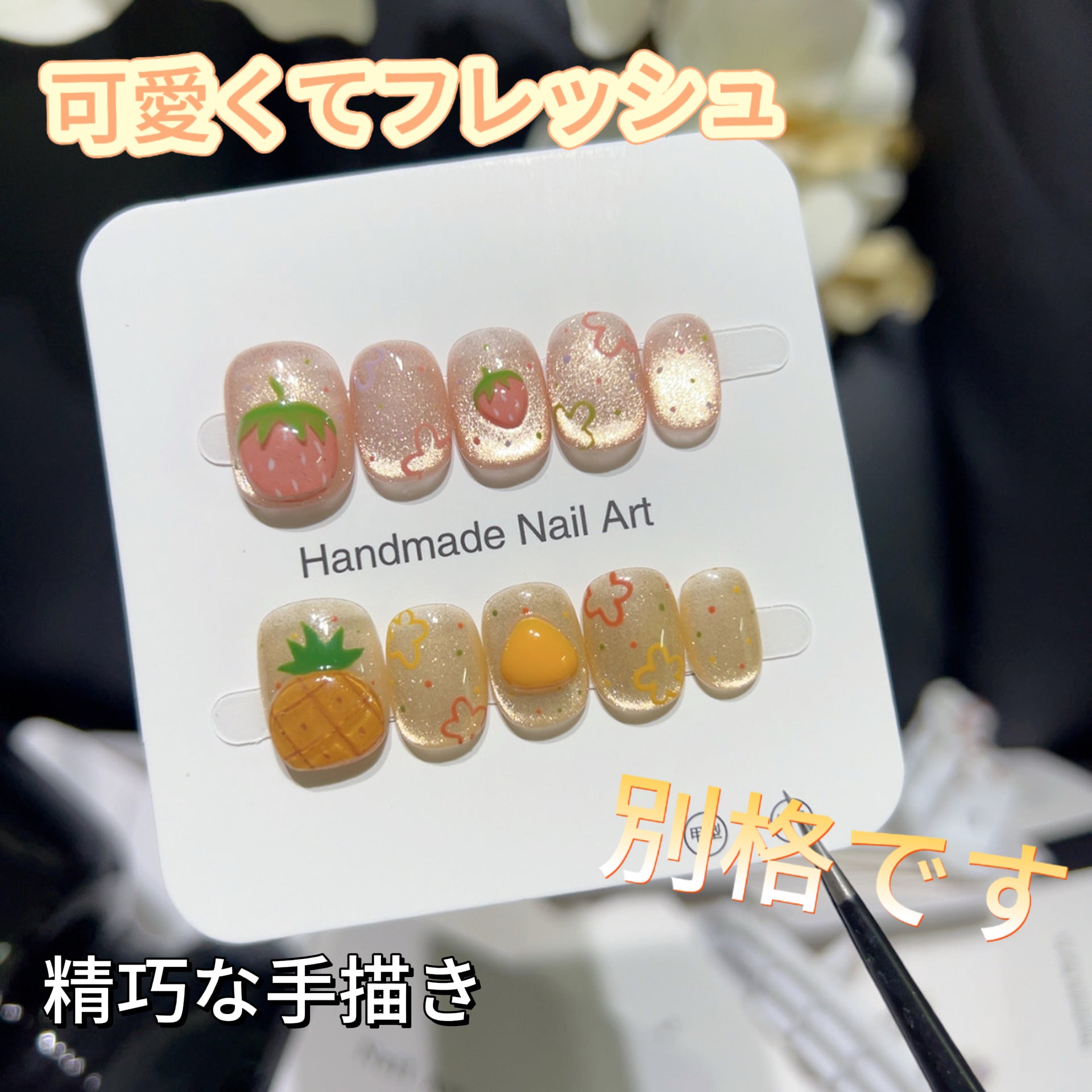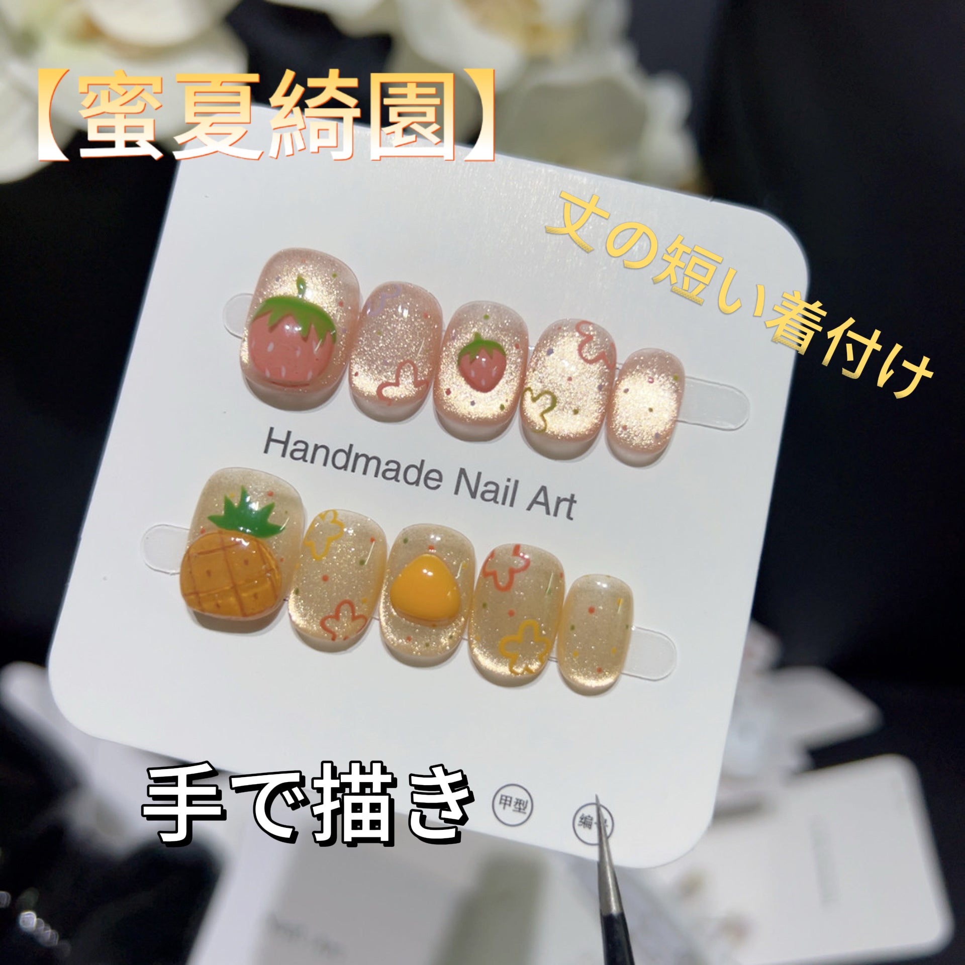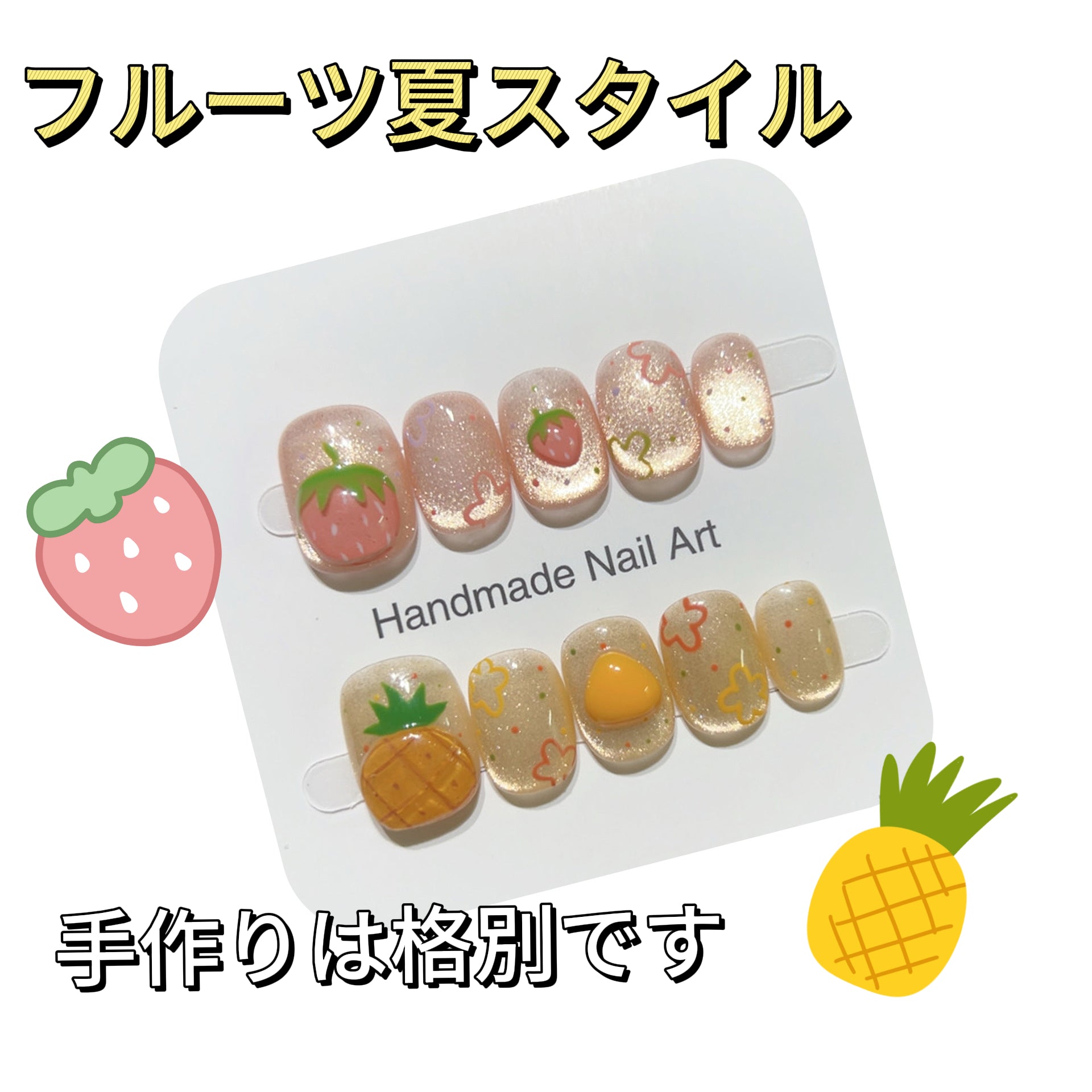 【蜜夏綺園】イチゴとパイナップル果物の手描きのマニキュア 可愛くてフレッシュシンプル