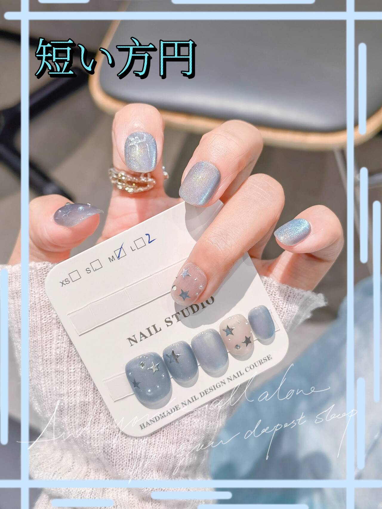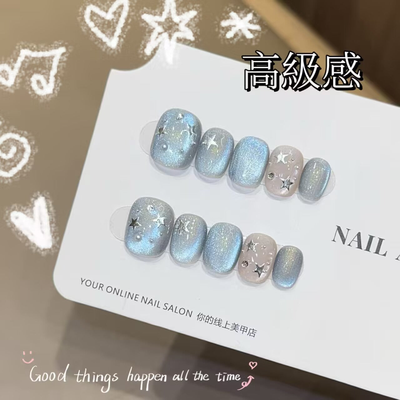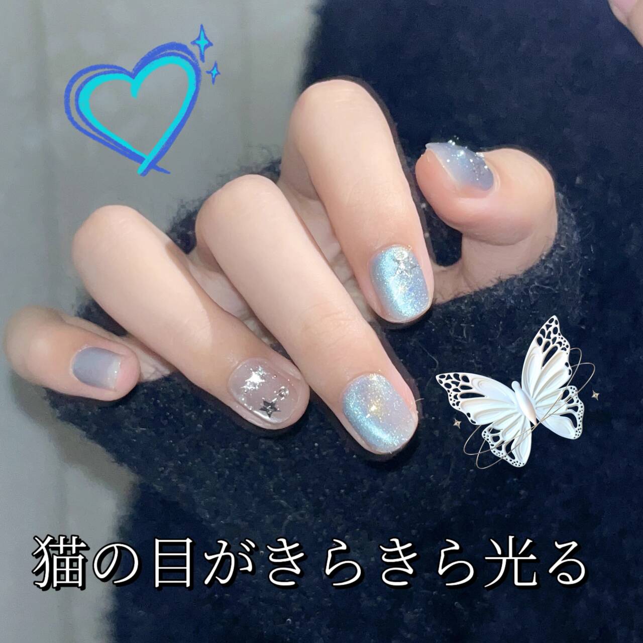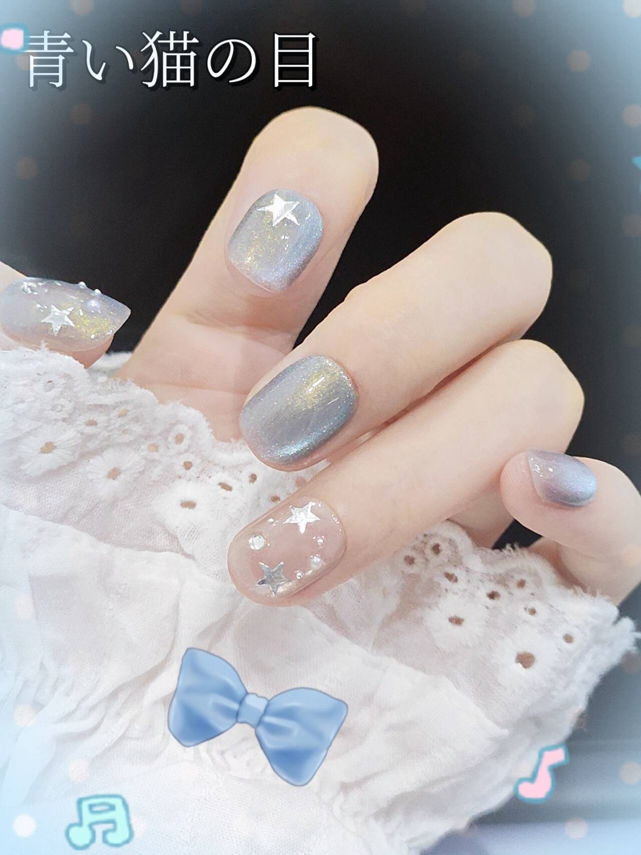 青い猫の目の星の砕いたダイヤ短い方円透明顕白着用甲