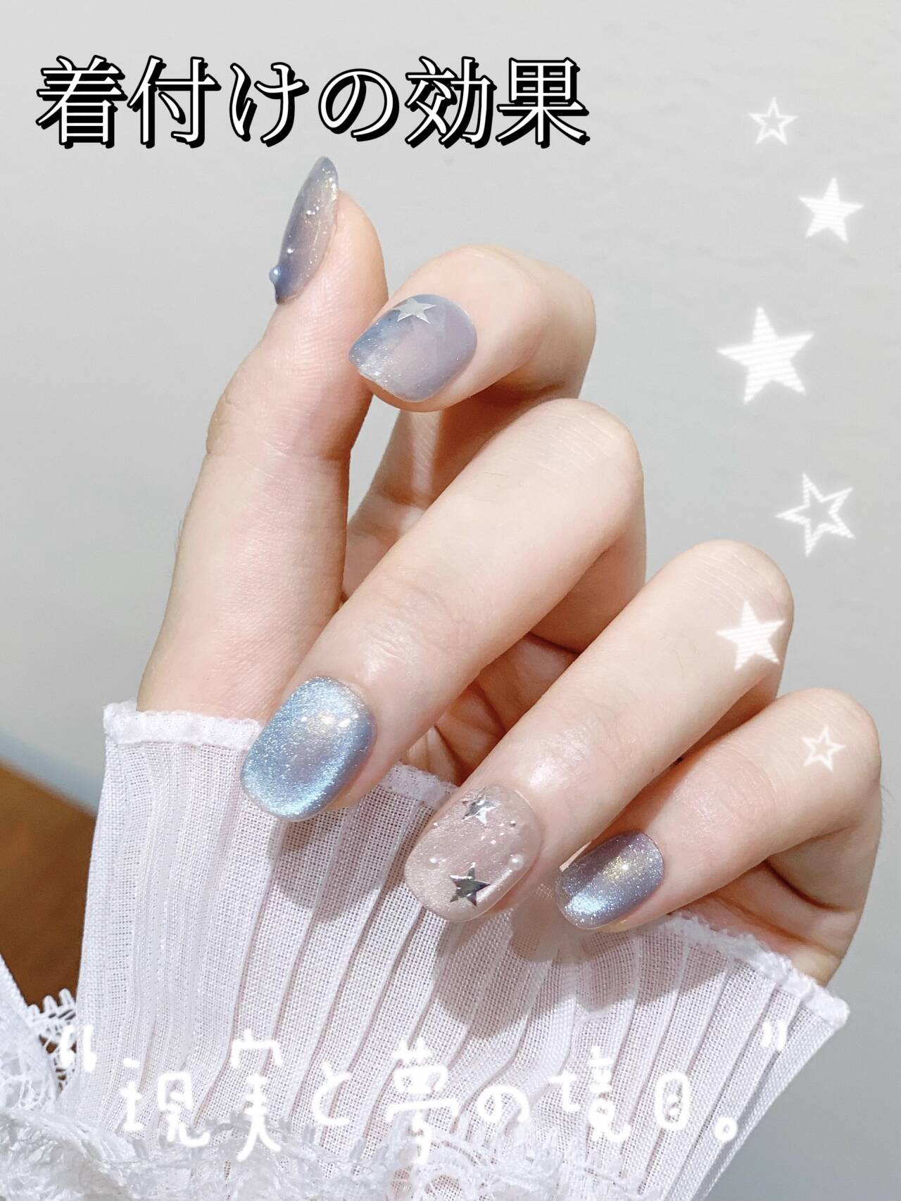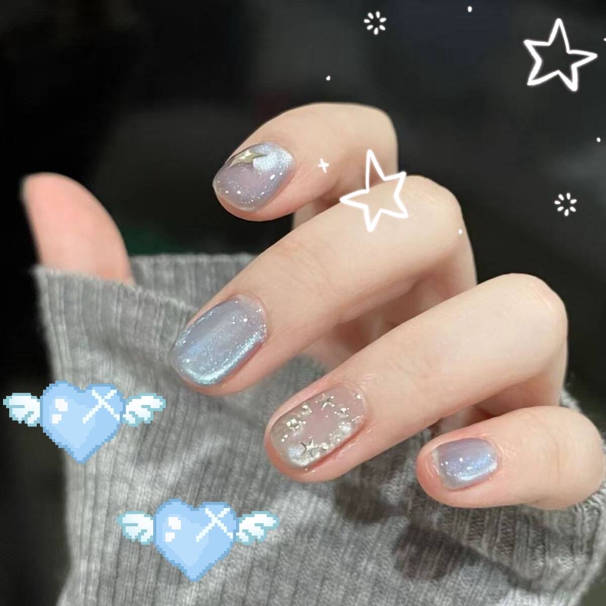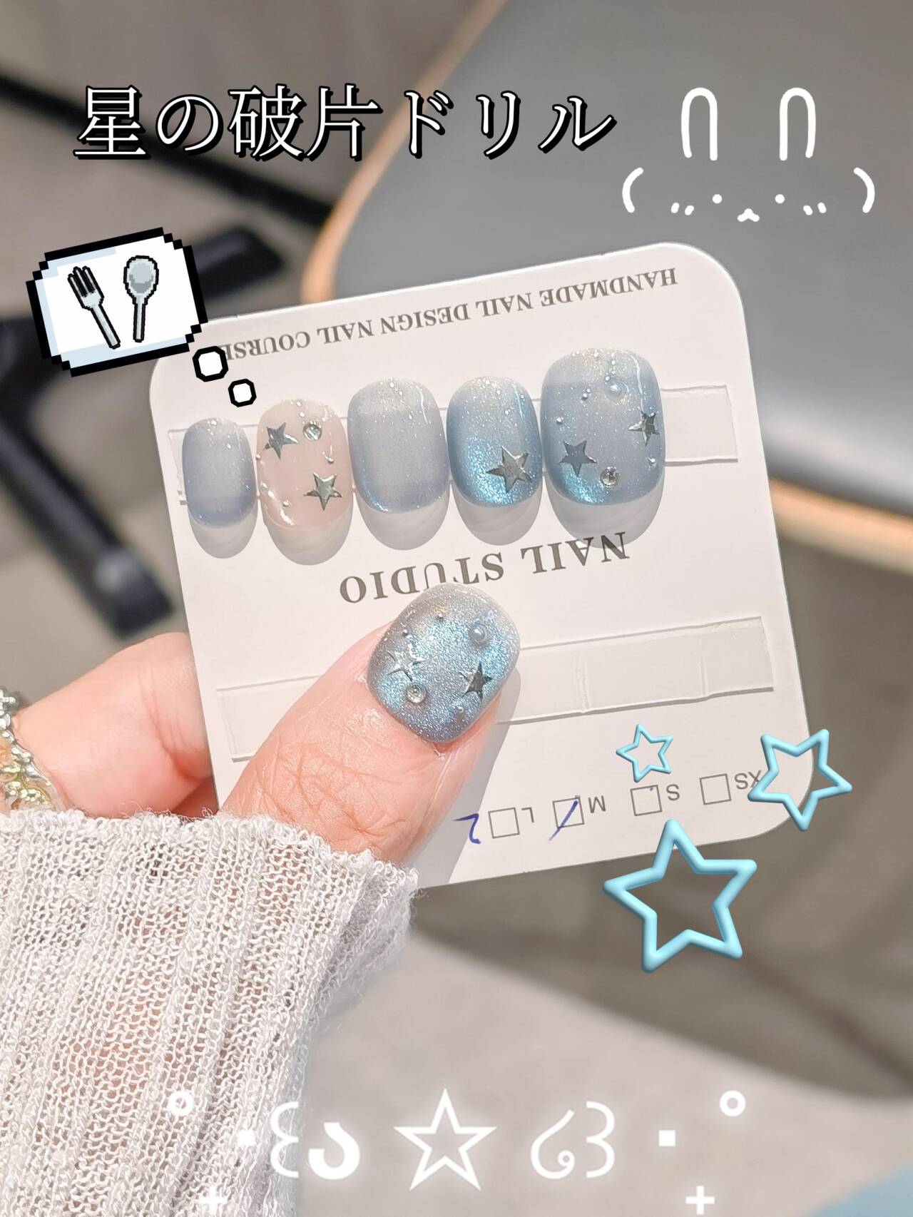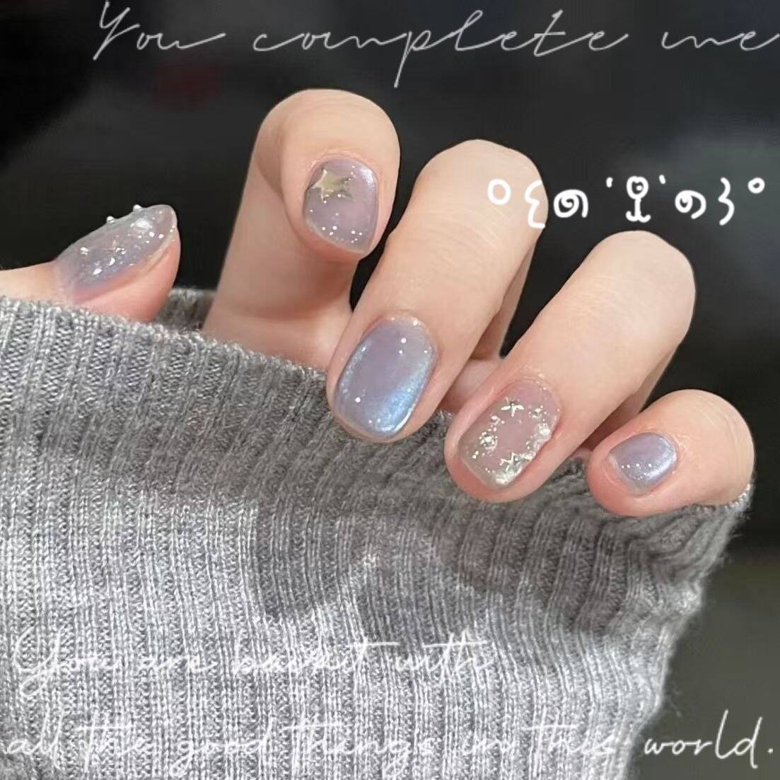 青い猫の目の星の砕いたダイヤ短い方円透明顕白着用甲