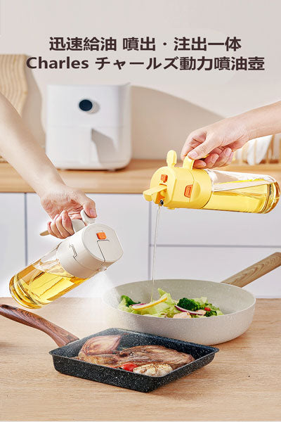 チャールズ自動開閉オイルボトル スプレー・注ぎ両用 キッチン用 油付着せず漏れない