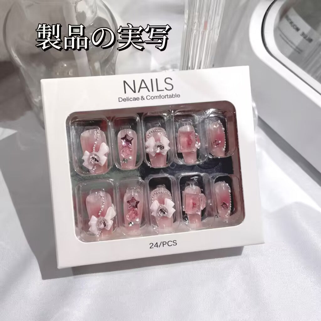 バービー姫の可愛いリボンダイヤモンド飾り重工の甘い台形のネイル