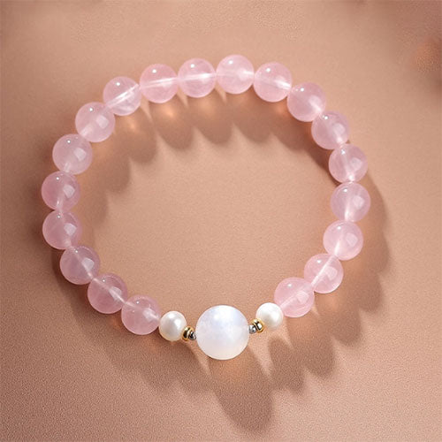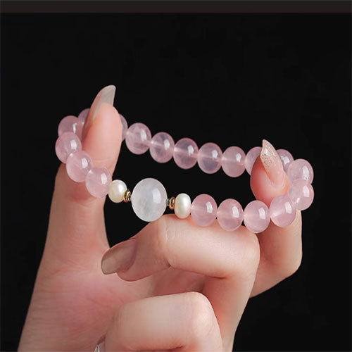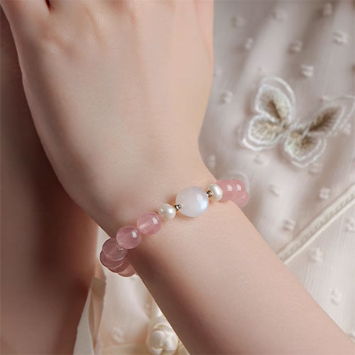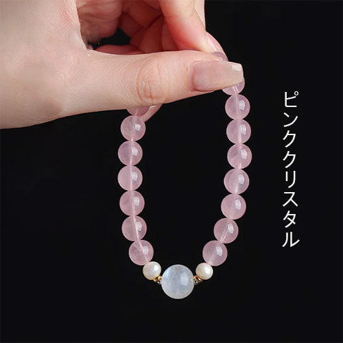 ピンククリスタルの手串高級感が巡り巡ってきますムーンストーン真珠のブレスレット