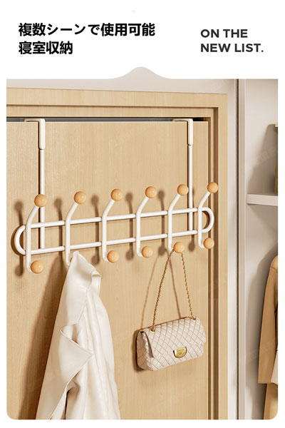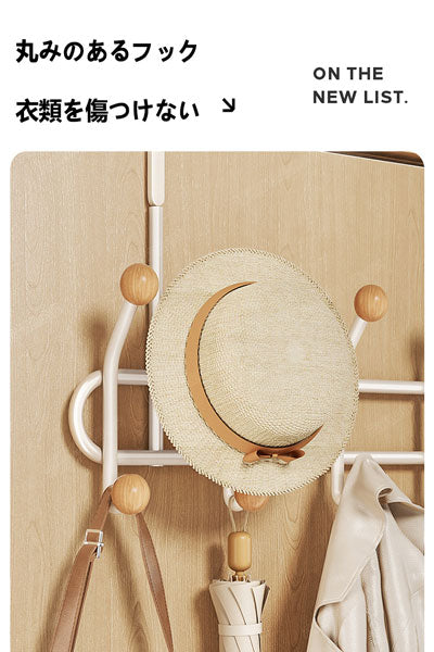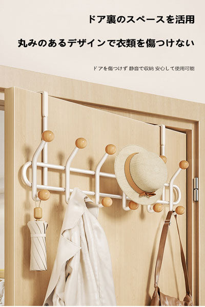 ミルクホワイトの寝室のドアの後ろの衣類掛け 家庭用ノンパンチ掛衣フック 玄関ドア用の帽子・コート・バッグ収納ラック
