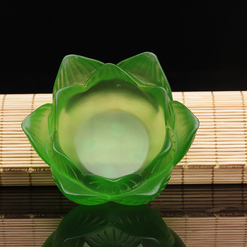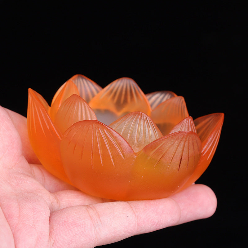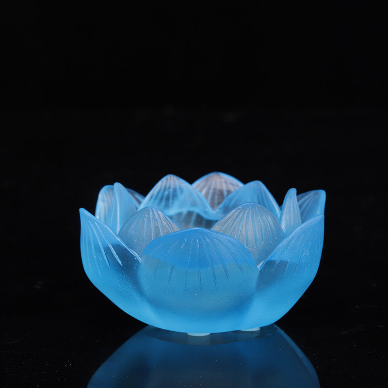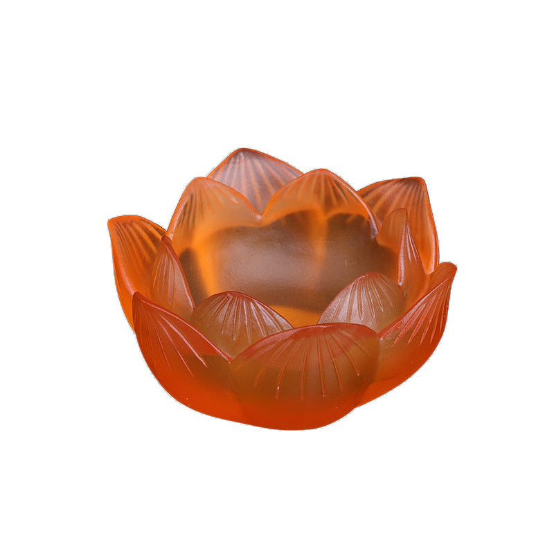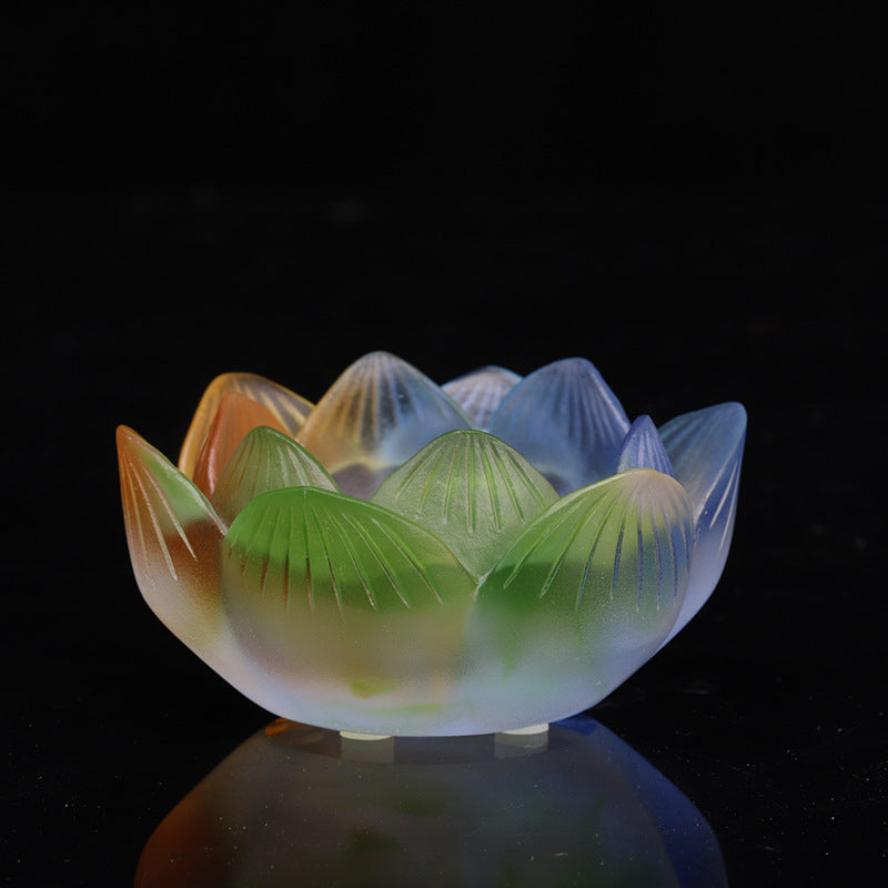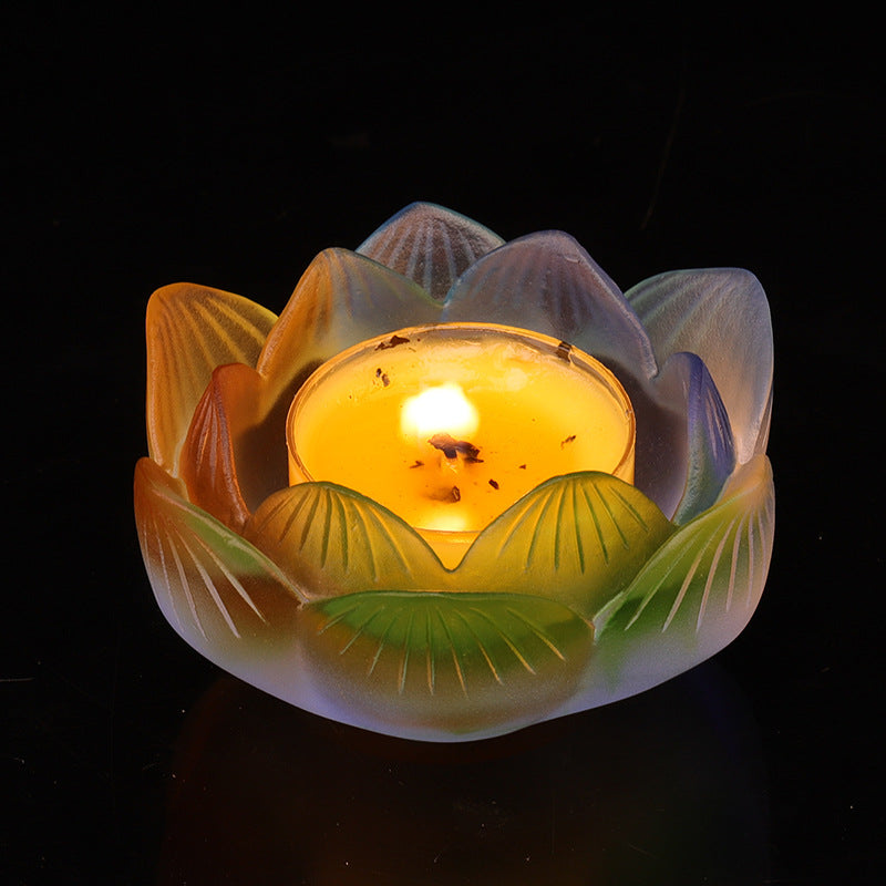 七彩琉璃の蓮花形油灯台 長明灯ろうそく台