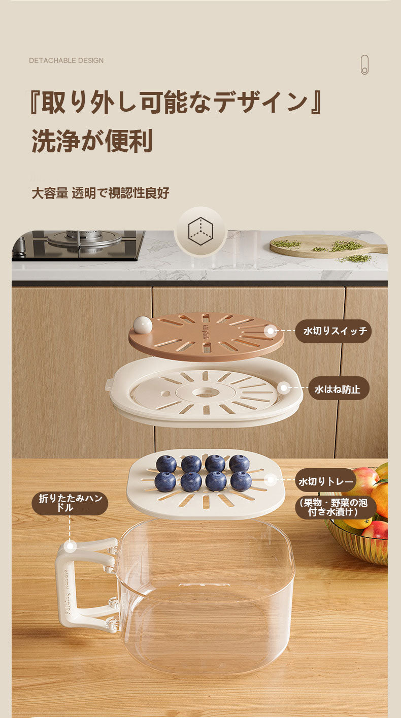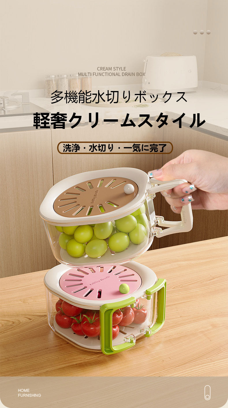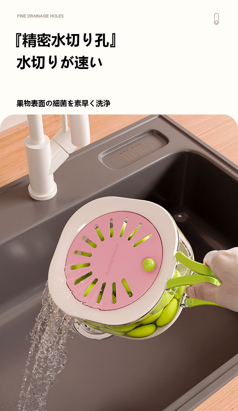 二重構造の水切り籃、家庭用の可愛い果物籃、洗浄と水切りが二合一、厚手の果物バサン、野菜洗い籃、蓋付き