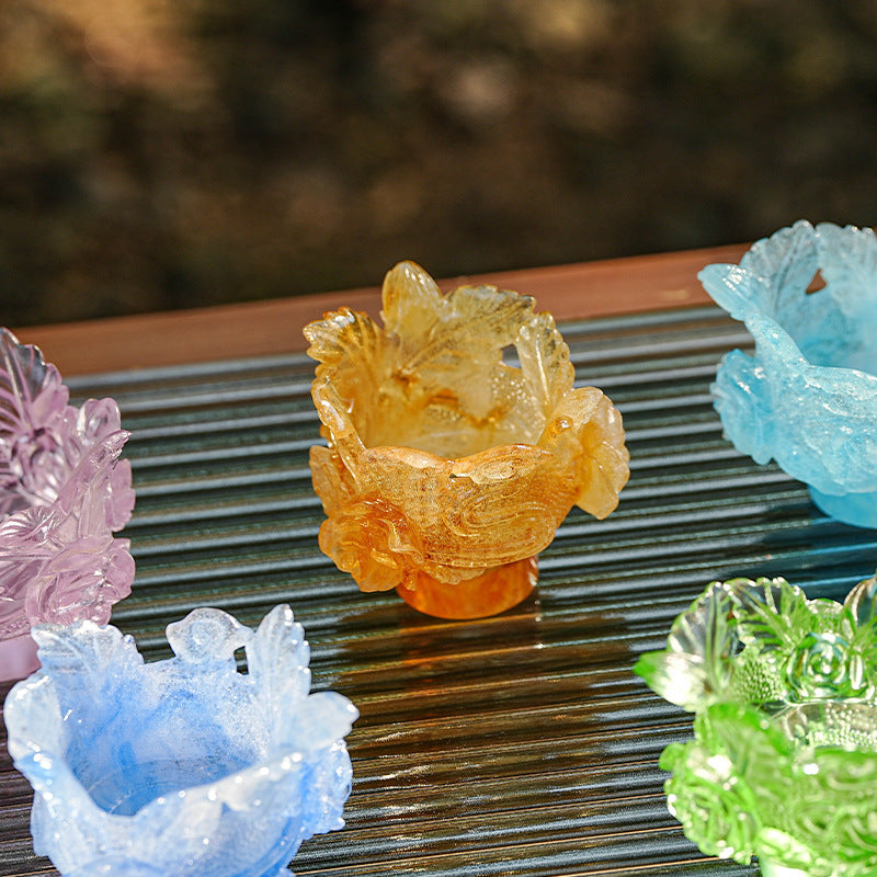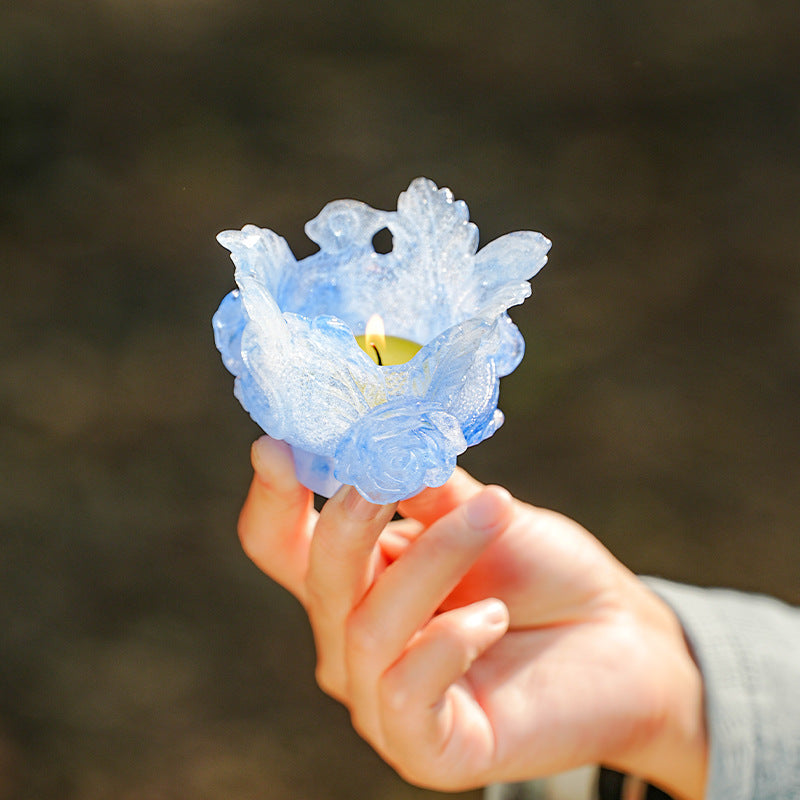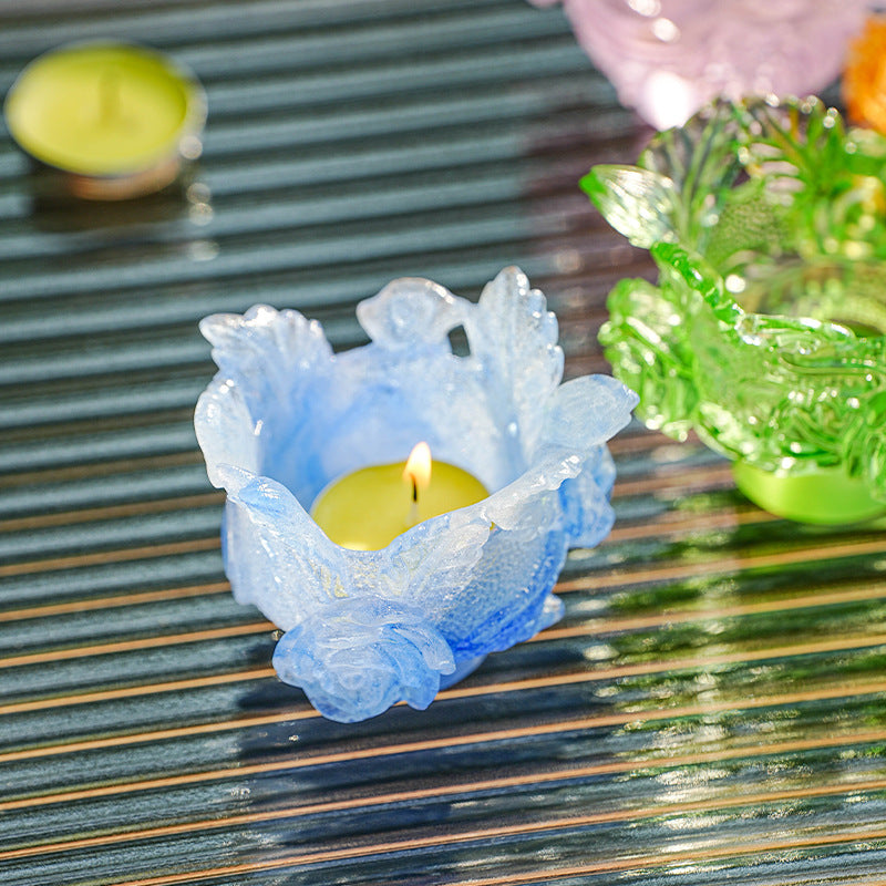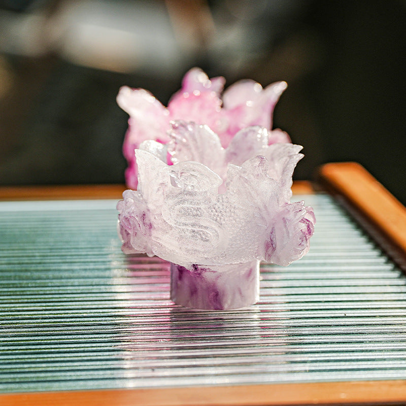 古法琉璃 粉焼琉璃 燭台 仏香台座