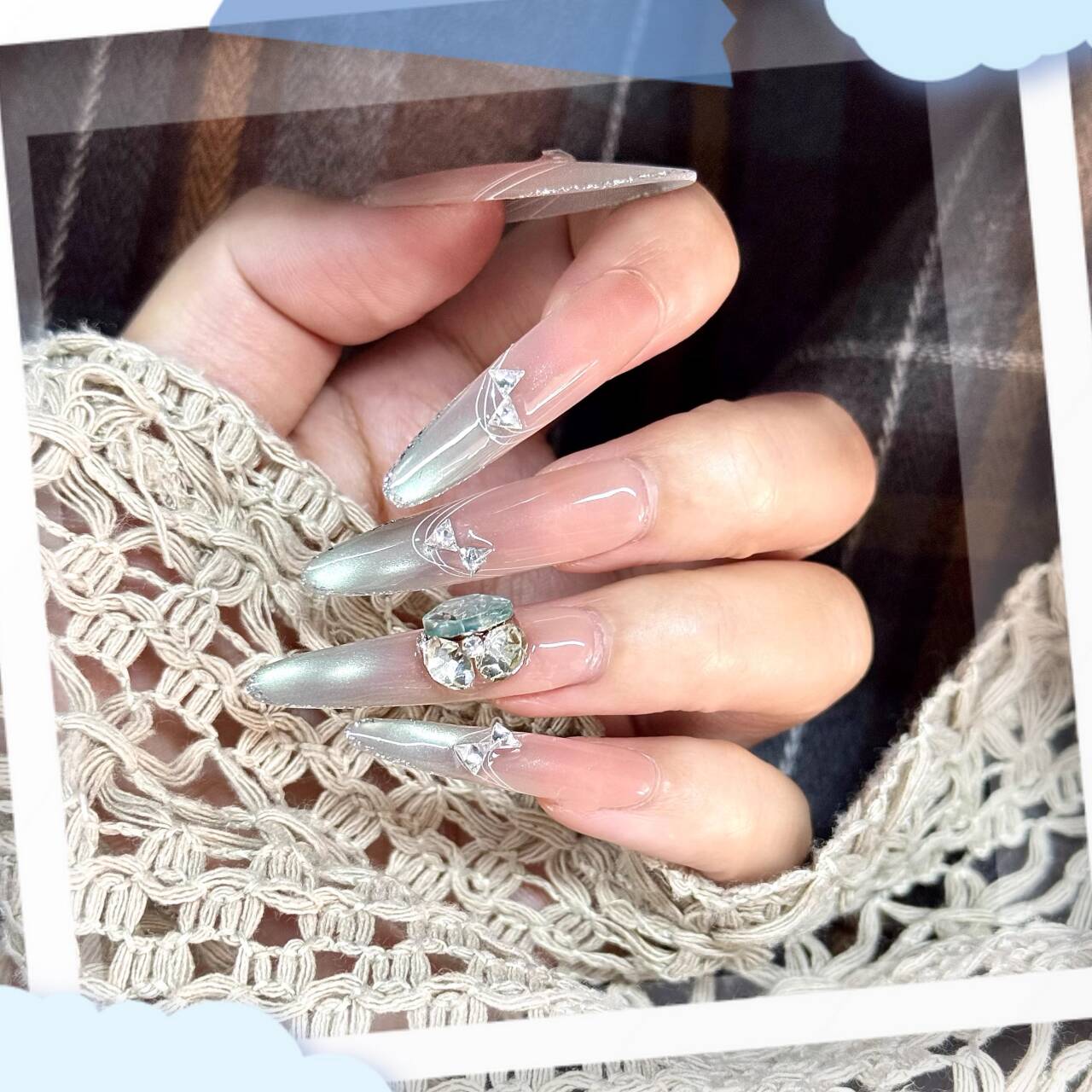 孔雀藍涙氷透頬紅純欲高級優雅な手彫りダイヤ細長款楕円を着て甲を着け