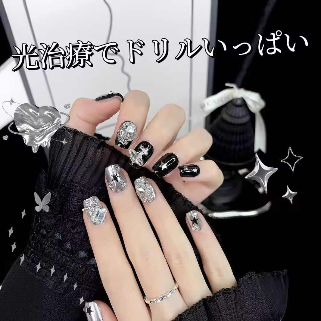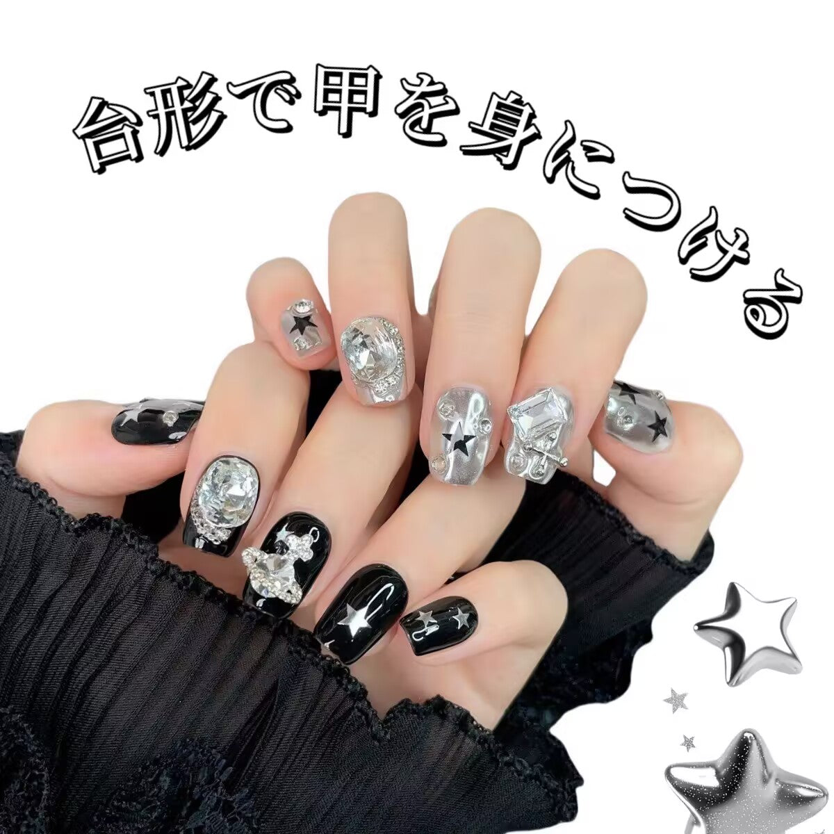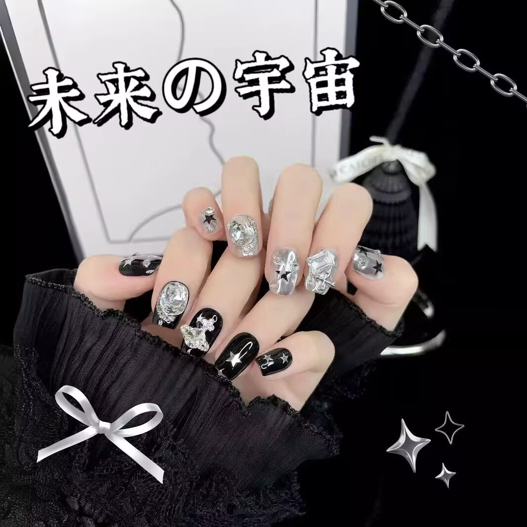 未来の星空の純手制光治療満ダイヤデザインの目新しい爆閃小粋銀黒短款台形着用甲