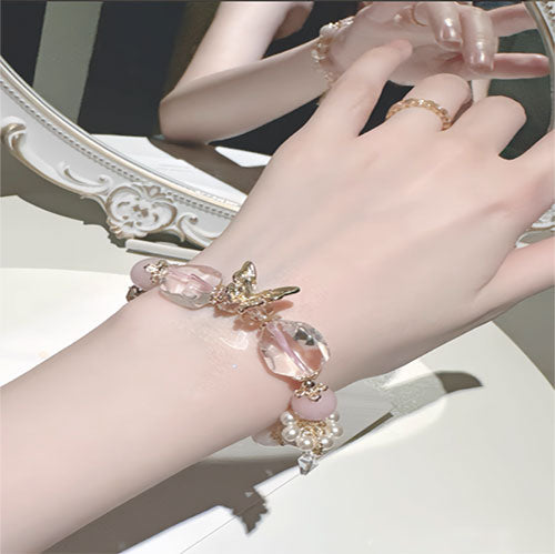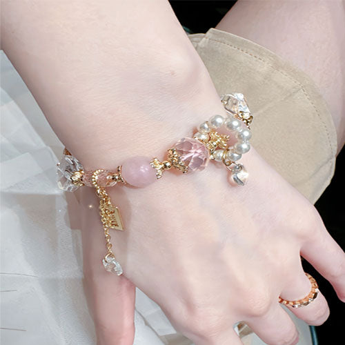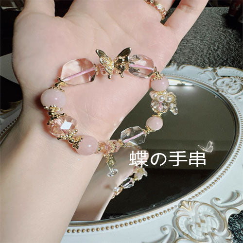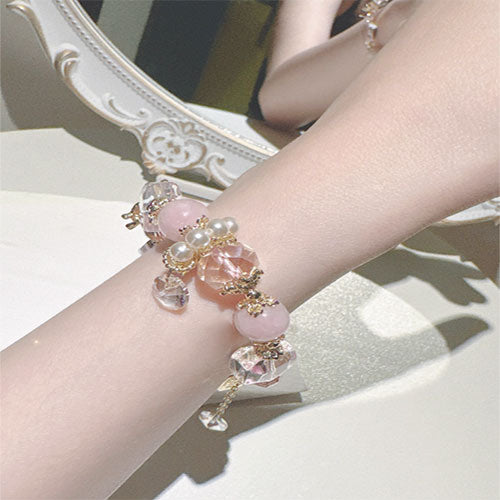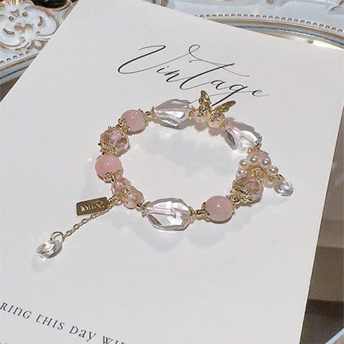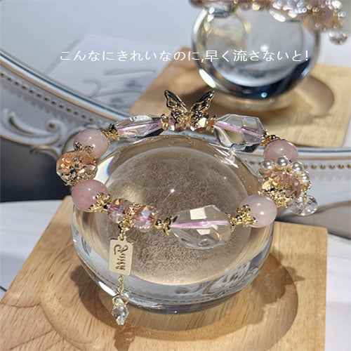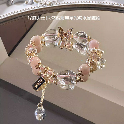 [浮靡天使]天然粉豪宝星光粉水晶腕輪