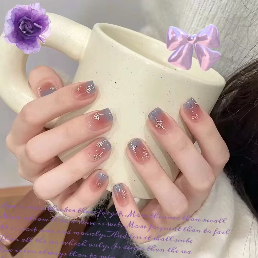 秋冬シンプルに見せる白グレーブルーのグラデーションチーク短い台形のウェアラブル