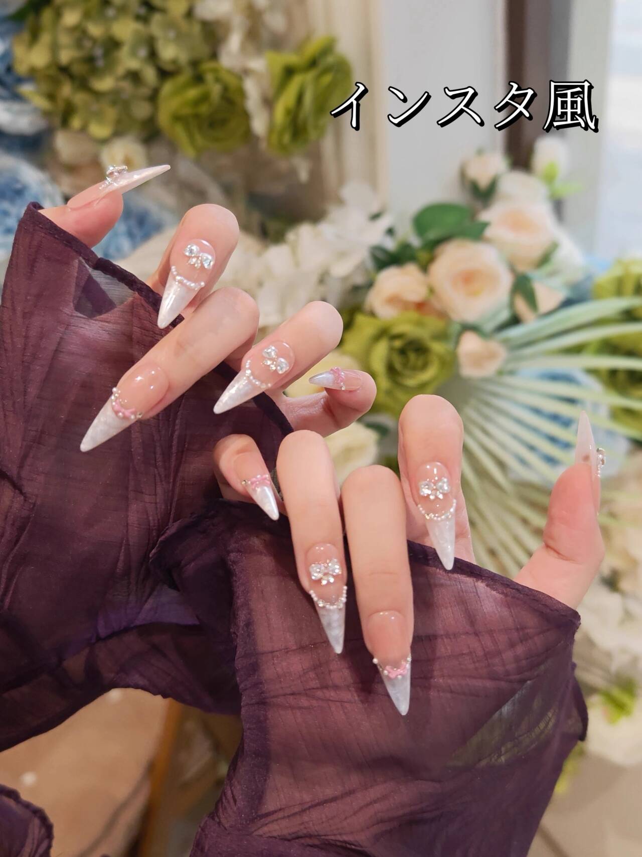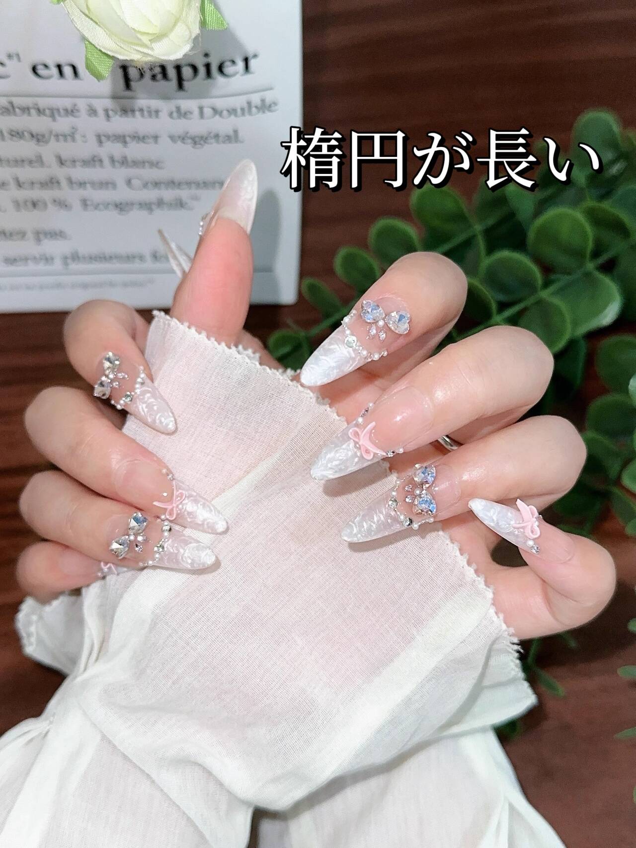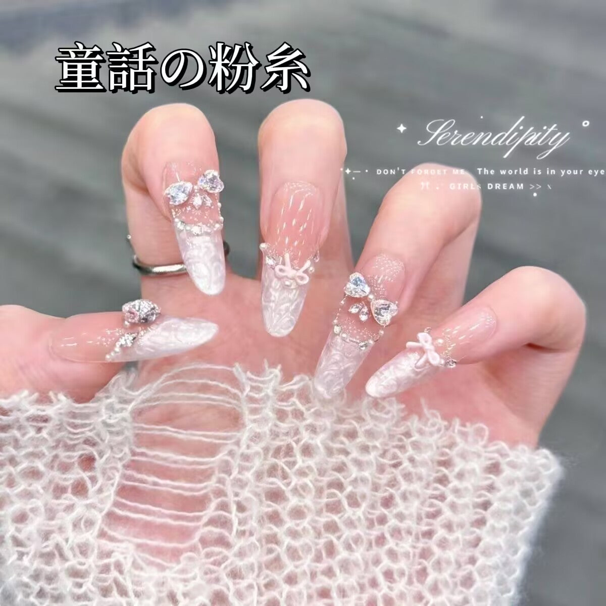 童話の粉の紗の氷透猫の目の頬紅のリボン飾り砕いたダイヤ甘くて優しい優雅な高級な長い楕円を身に着け