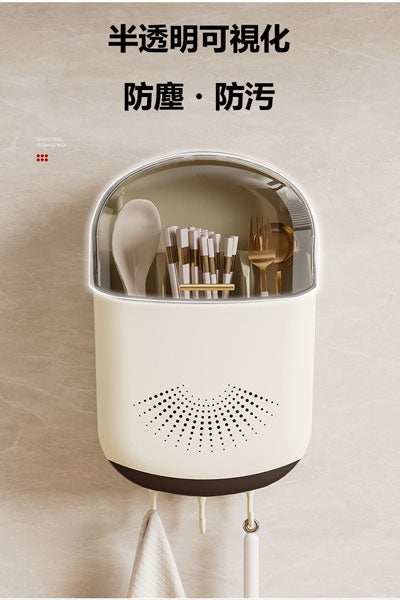 箸立て・箸籠 ノンパンチ式 キッチン収納ラック スプーン収納バケツ プラスチック製 壁掛け式 水切り箸収納