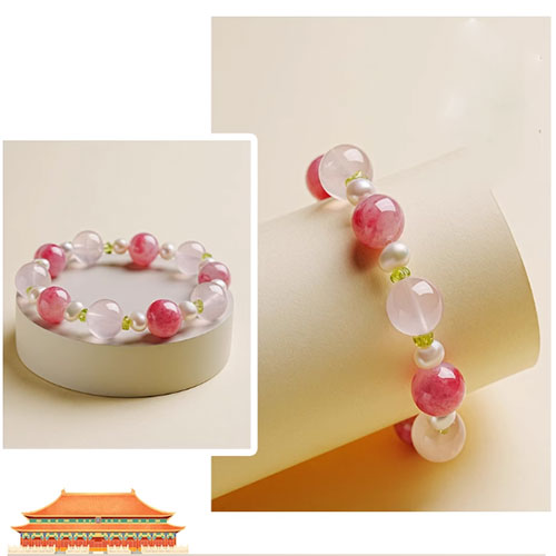 粉の水晶の腕輪の女性の款天然の粉の水晶の水晶の手串は軽くて贅沢な小さい衆の贈り物
