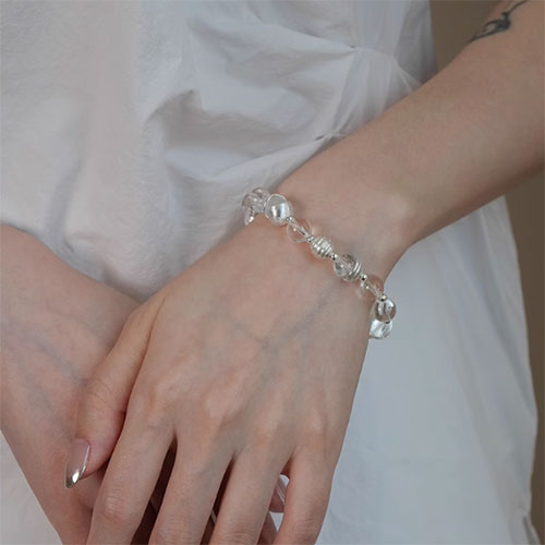 素図925銀焼白天然クリスタルパッチワーク手串洗練されたニッチなデザイン高級感のあるビーズ
