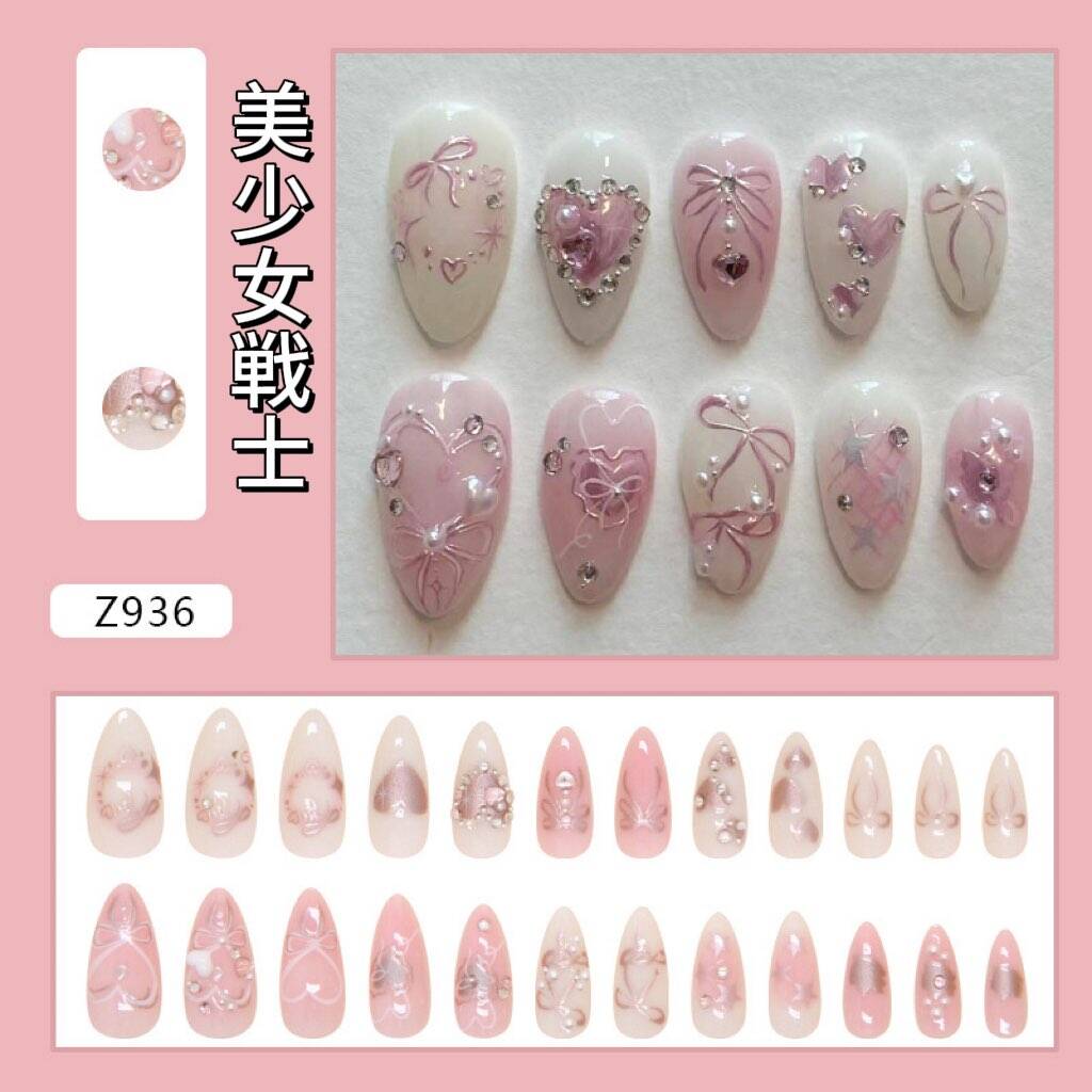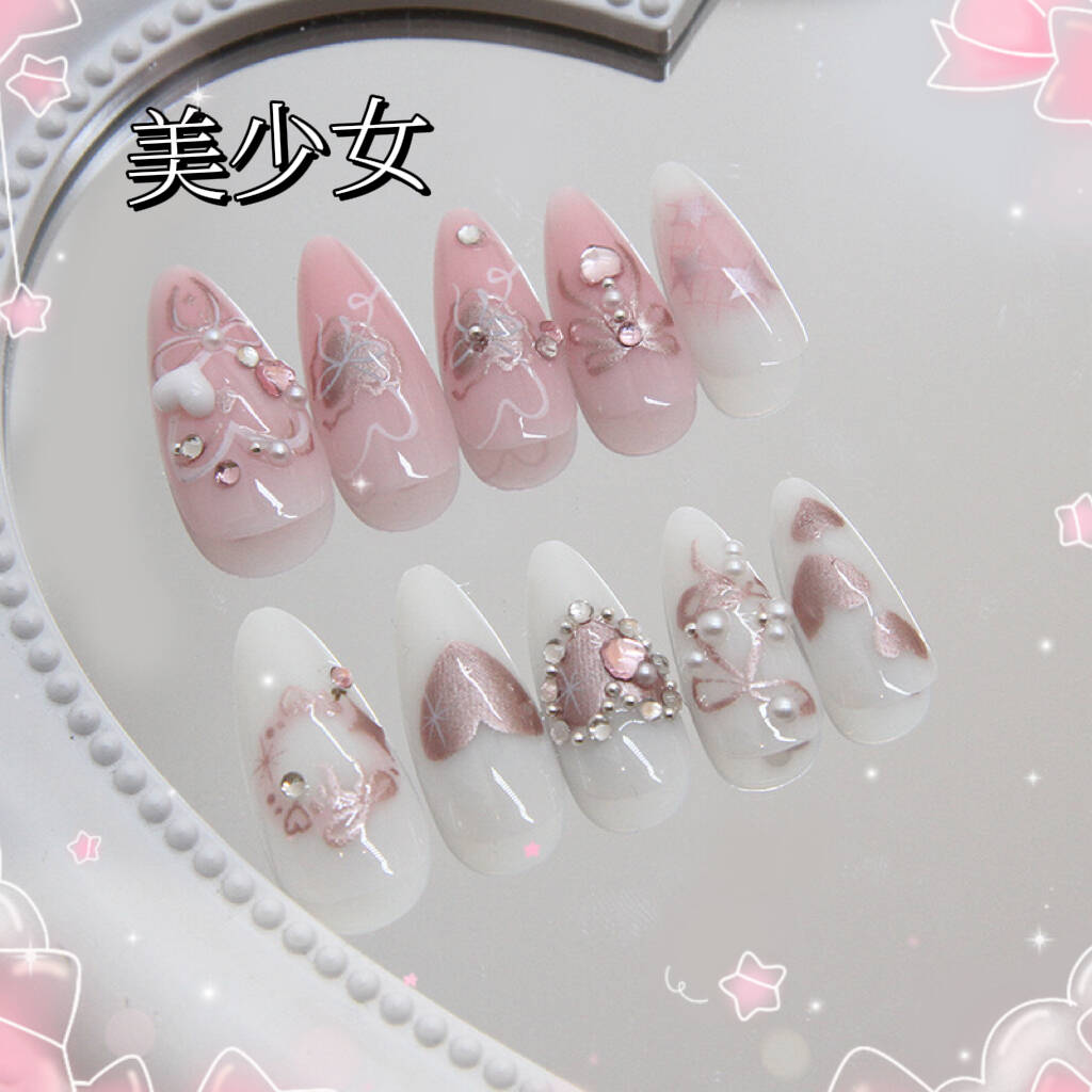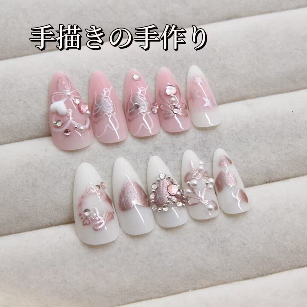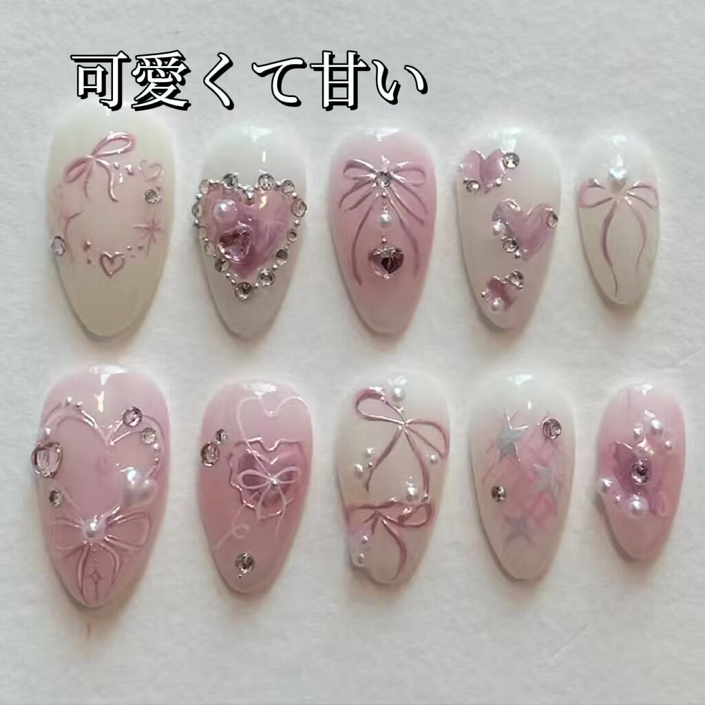 美少女手描きリボン砕いたダイヤが甘くてかわいい水滴形のネイルを飾り