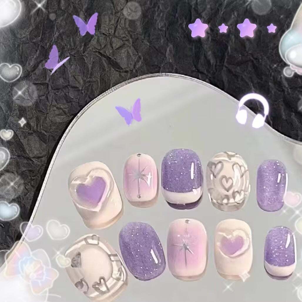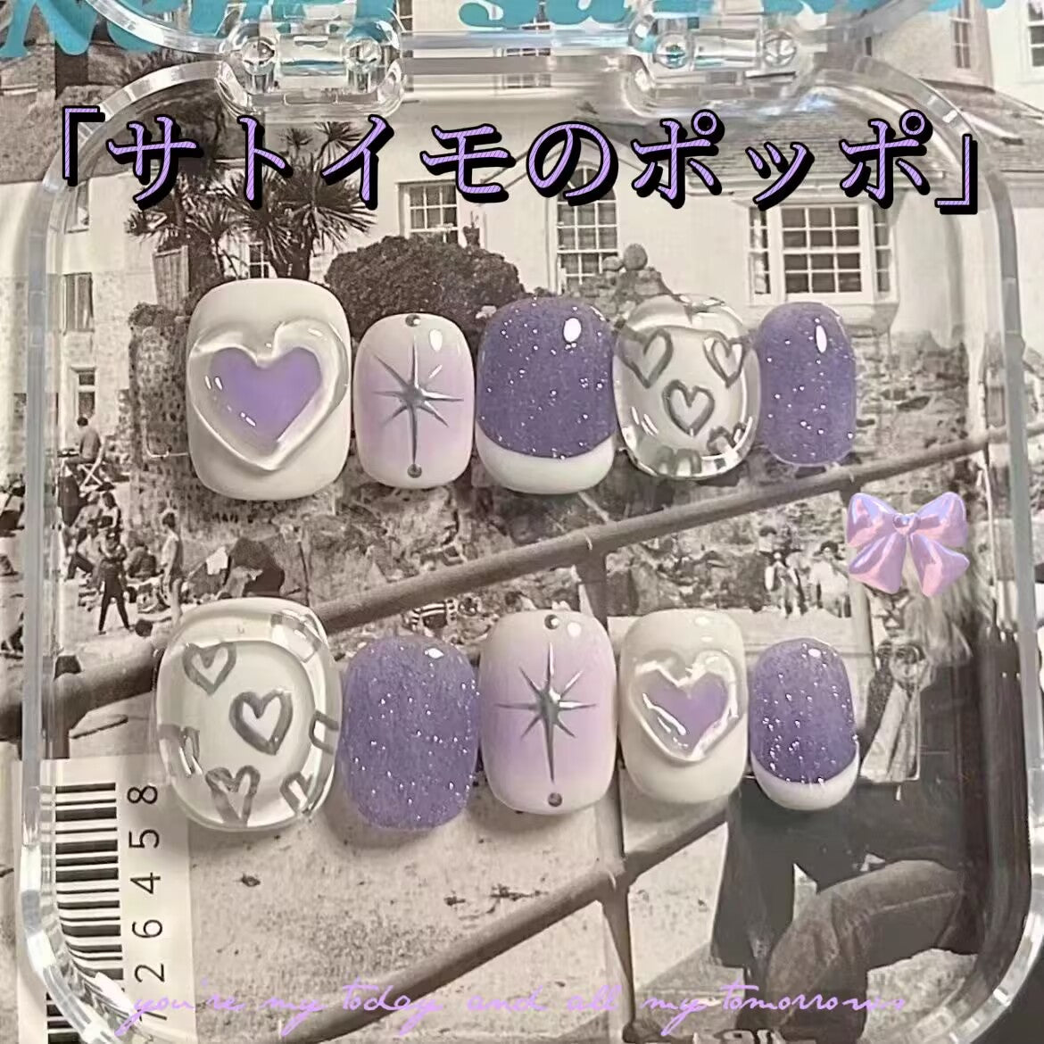 芋泥波波手画落書き紫の味が優しく見えます白短方円甲を身に着け