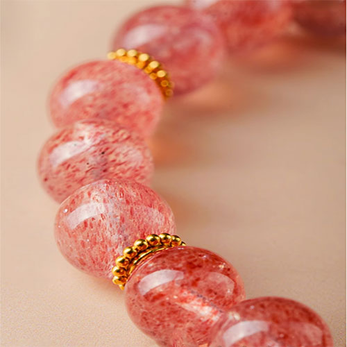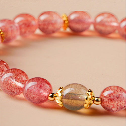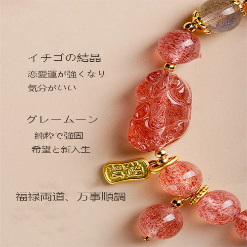 苺の晶の知り合いの猫のネックレスの手串桃の花の天然の粉の水晶の猫の金を招き