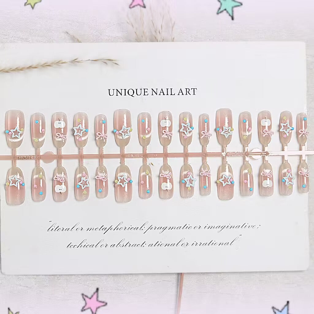 青りんごの楽園蝶々結び星ドーパミン飾り長い楕円の甘くてかわいい甲をつけ
