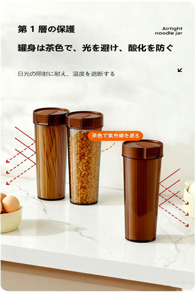 麺収納ケース 雑穀・素麺用ストッカー 保存桶 収納罐 食品グレード密閉罐 キッチン用パスタ収納ボックス